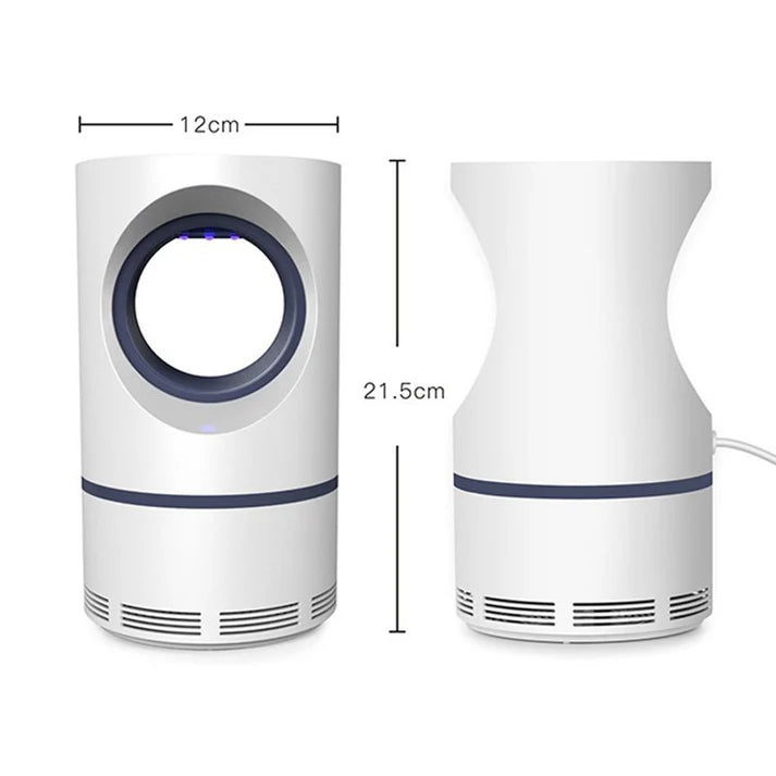 Función antimosquitos : Atrapa y elimina mosquitos y otros insectos voladores molestos. Luz UV atrayente: Emite una luz ultravioleta que atrae a los mosquitos hacia la lámpara.