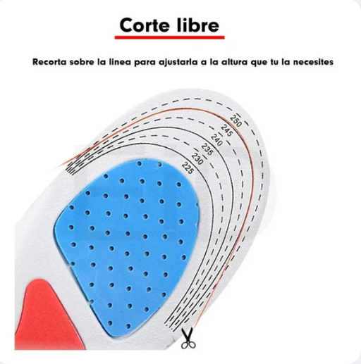Talla ideal para todo tipo de calzado. Puedes cortar y ajustar la plantilla a la talla exacta de tus zapatos, sin importar la talla ni el ancho, ya que viene con marcajes para cortar a la talla que desees.